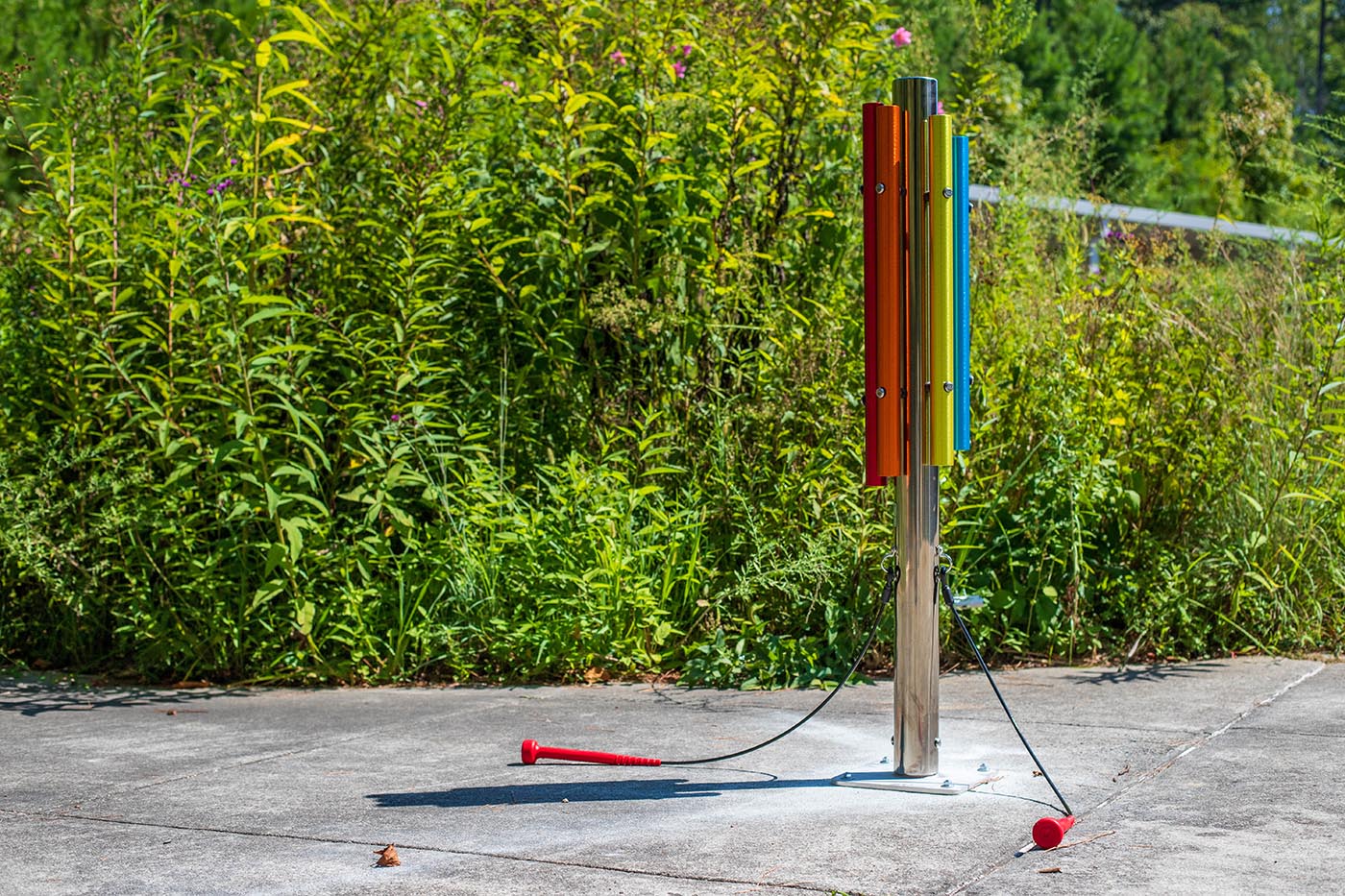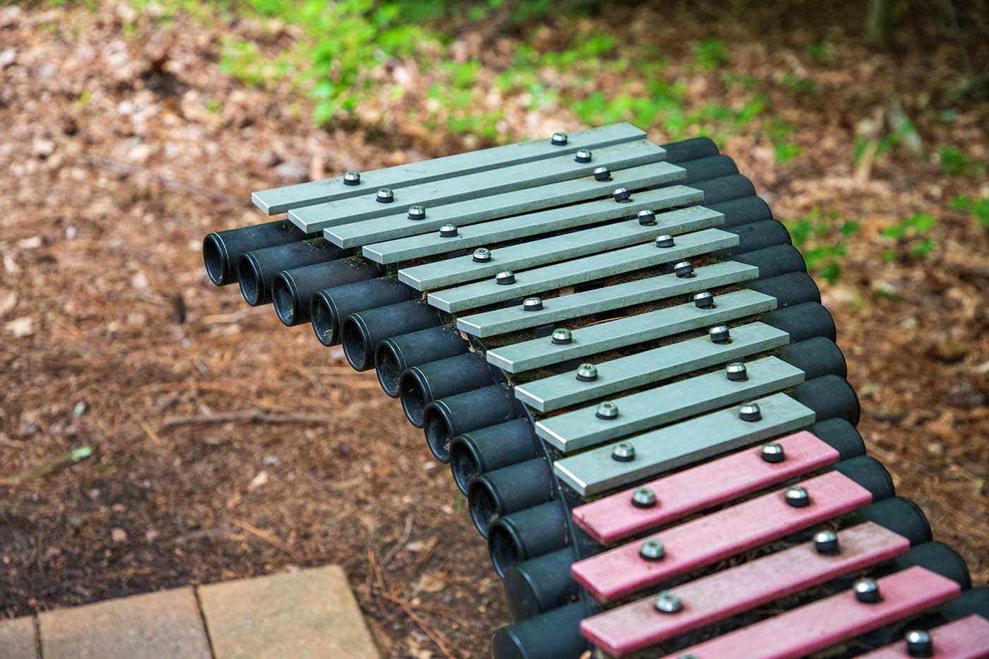 It may be quiet inside the library, but outside in Pritchard Park, you’re welcome to make some noise! Along the trails, you’ll find outdoor musical instruments like a xylophone, chimes, and drums.